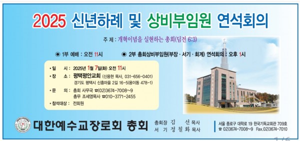 2025년 교단신년하례예배 및 상비부임원 연석회의 안내